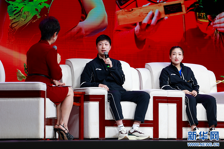 李曉霞、劉詩雯、許昕、馬龍分享拼搏心得(4月8日攝)。新華網發(徐華陵 攝)
