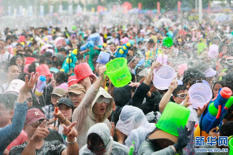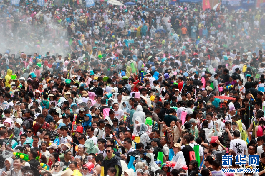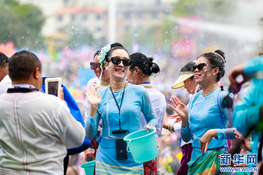 人們沉浸在潑水狂歡中(4月12日攝)。新華網發(劉云 攝)