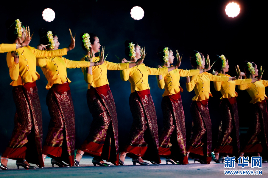 2025年芒市潑水狂歡節迎賓晚會現場(4月10日攝)。新華網發(劉云 攝)