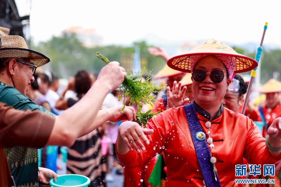 潑灑祝福(4月12日攝)。新華網發(劉云 攝)