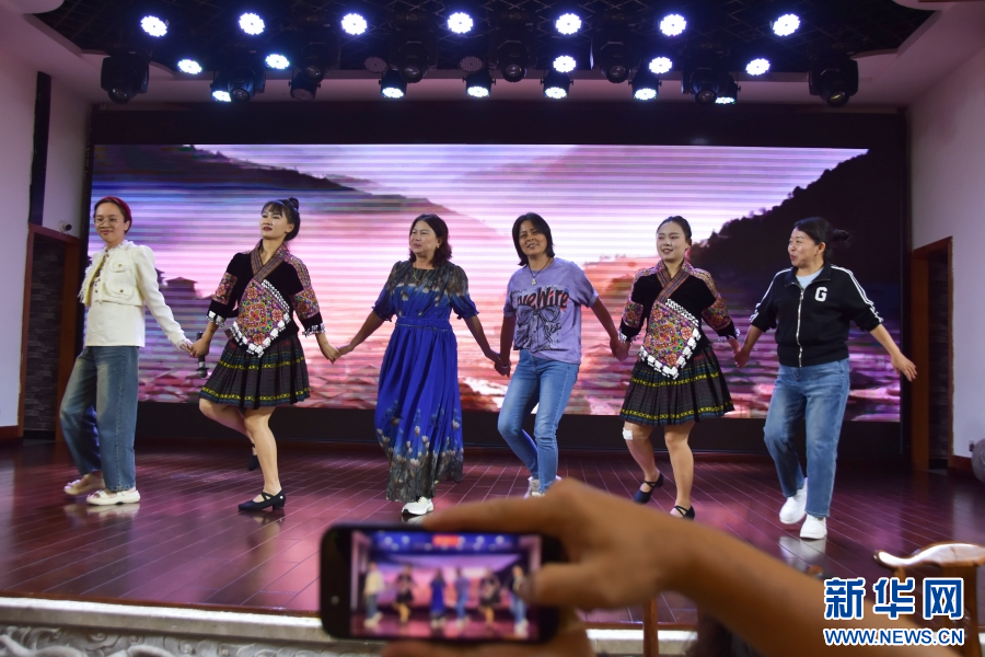 越南游客在云南省蒙自市一家過橋米線店受邀上臺共舞(4月13日攝)。新華網發(薛瑩瑩 攝)