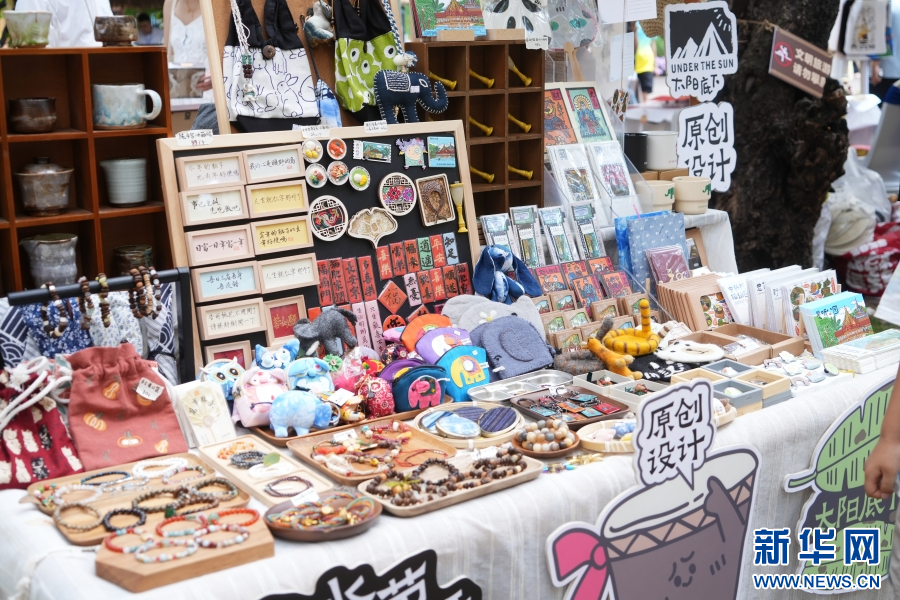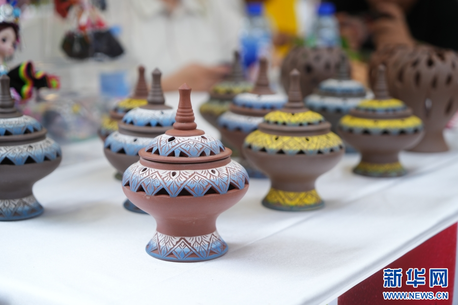 潑水節期間,西雙版納趕擺現場的文創市集(4月13日攝)。新華網發(西雙版納州委宣傳部供圖)