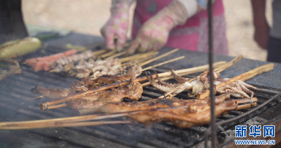 潑水節期間,西雙版納趕擺現場的美食(視頻截圖)。