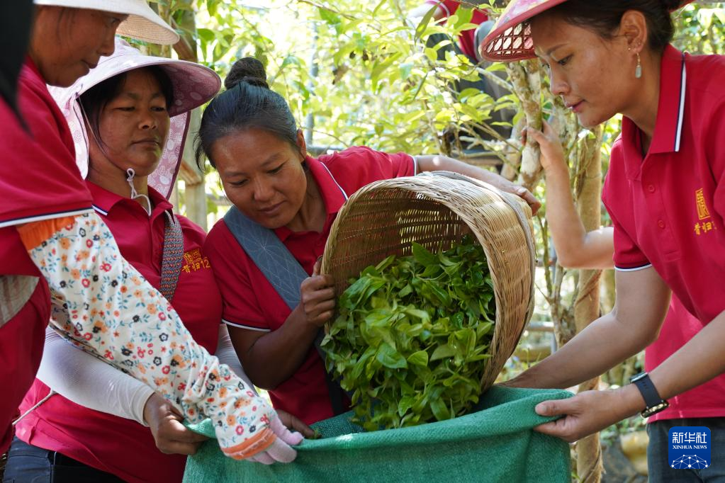 4月14日,昔歸村茶農在裝運采摘好的茶葉鮮葉。新華社發(張正霖 攝)