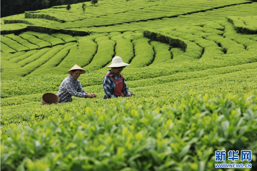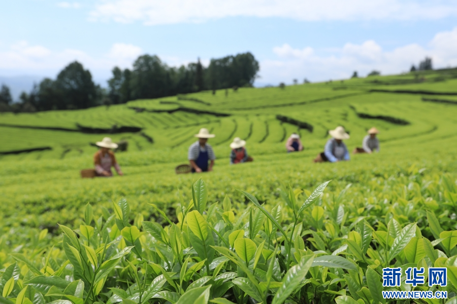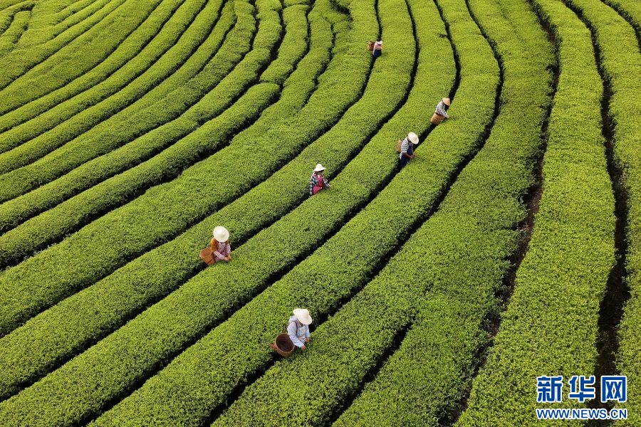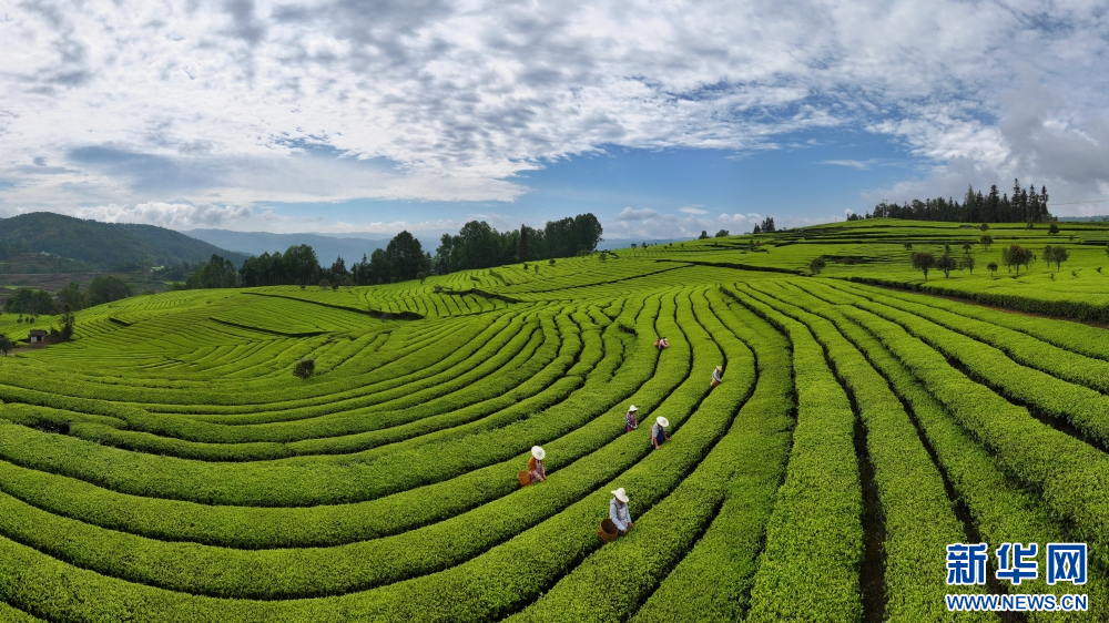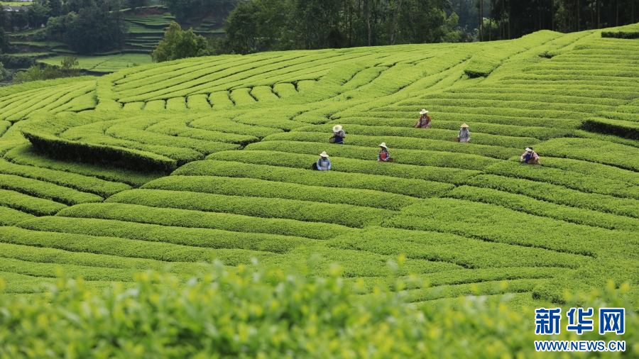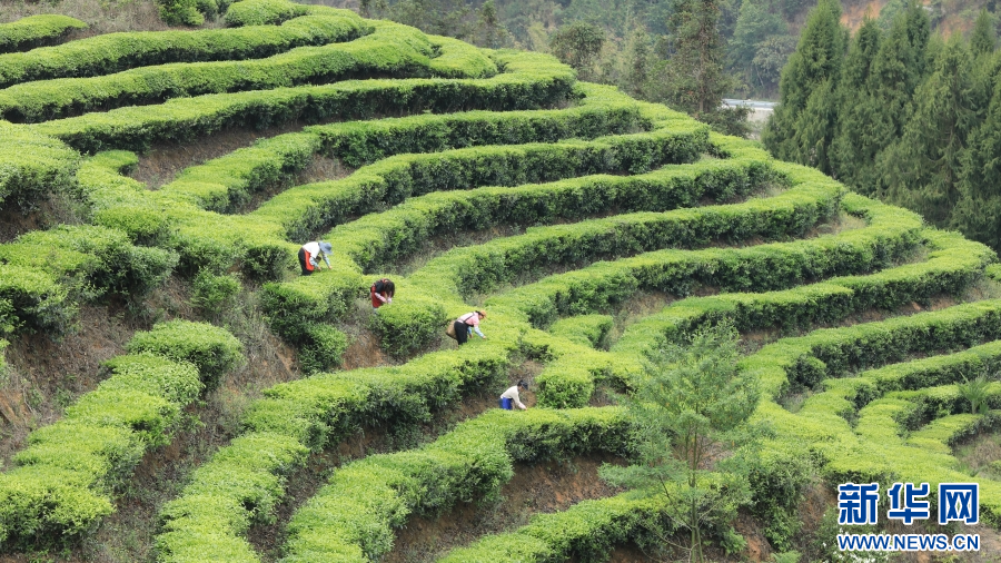 4月18日,茶農在云南省騰沖市蒲川鄉坪山村采摘春茶。新華網發(龔祖金 攝)