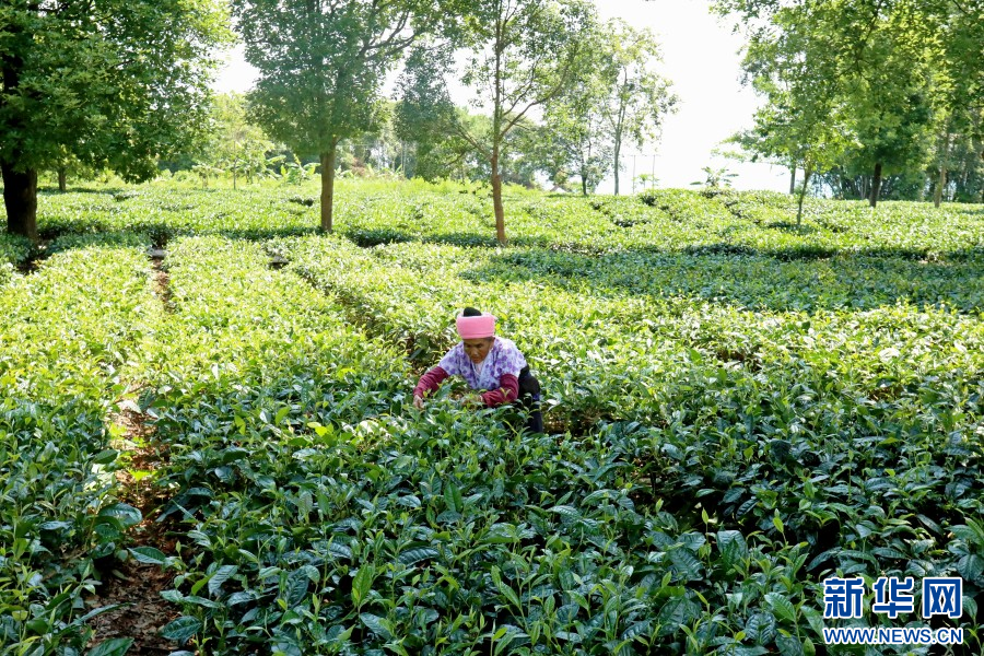 茶農正在采摘春茶(4月8日攝)。新華網發(梁穎 攝)