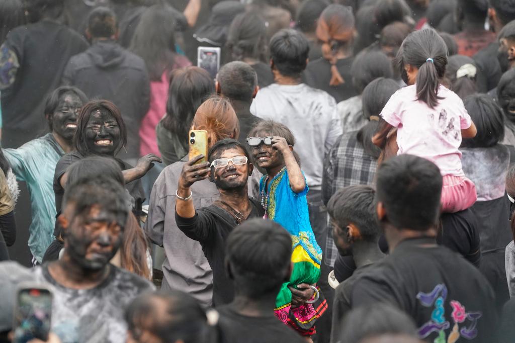 云南墨江:民俗“抹黑臉” 狂歡送祝福