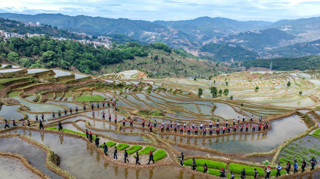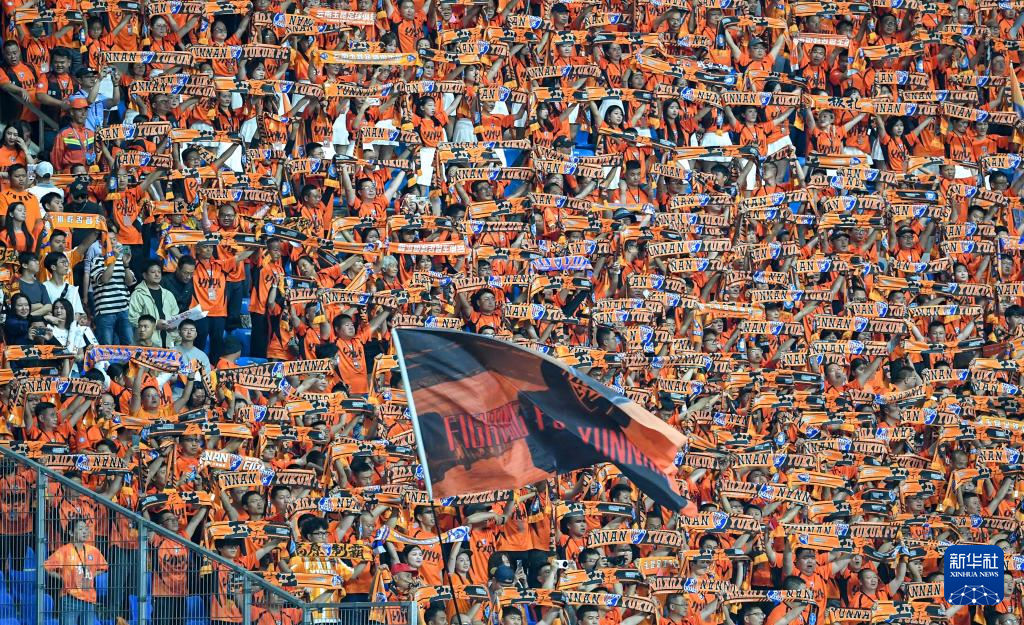 5月5日,云南玉昆隊球迷為球隊加油。新華社發(彭奕凱 攝)