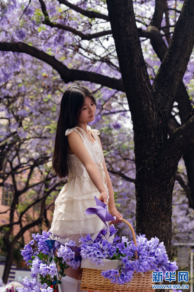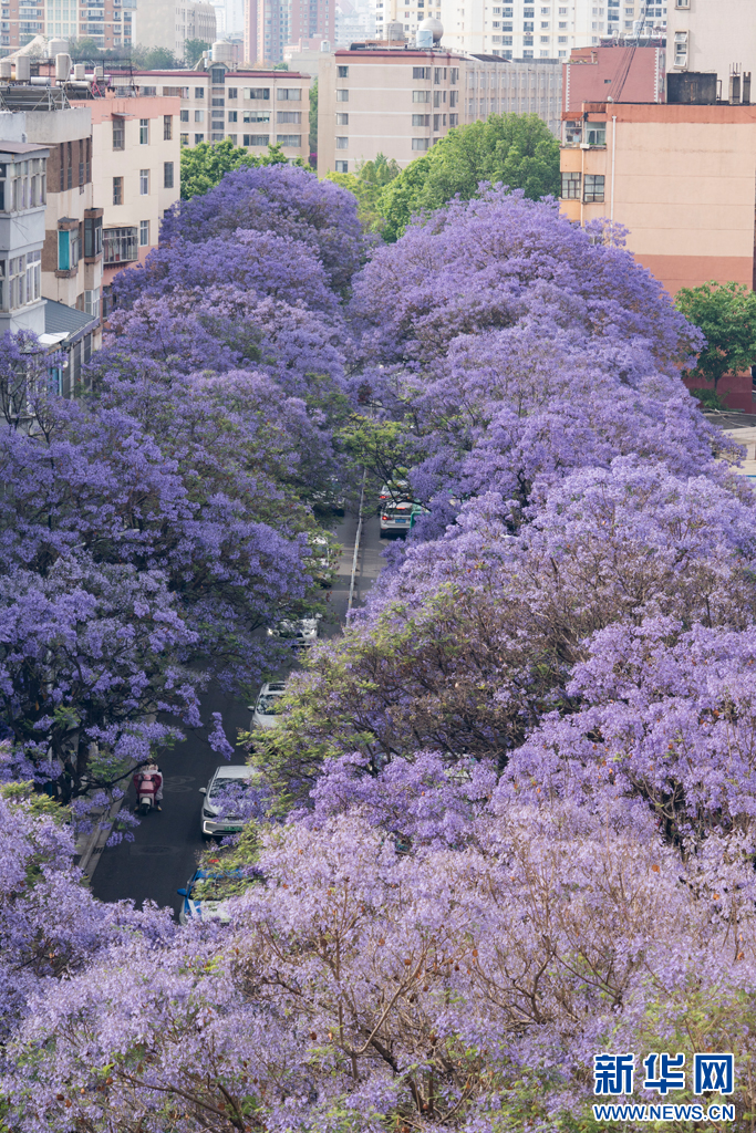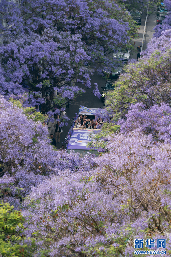 綻放的藍花楹(5月1日攝)。新華網發(鄭益 攝)