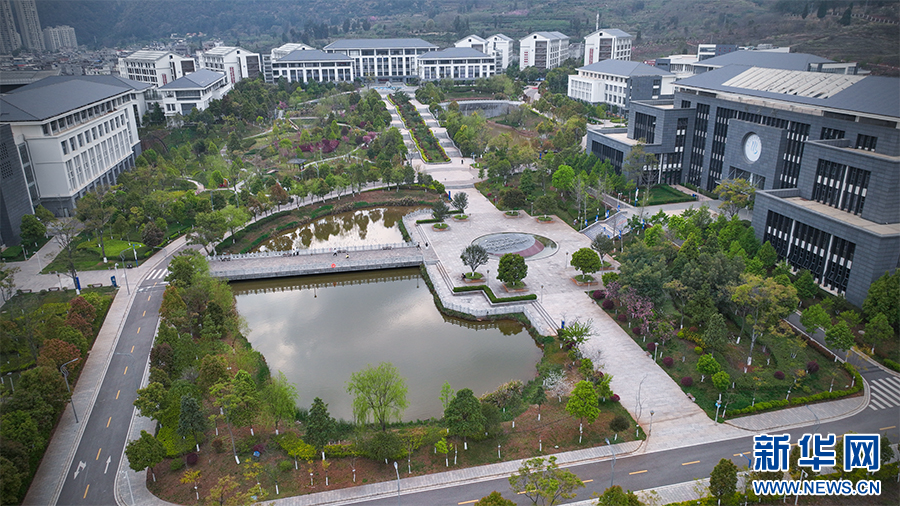 航拍云南水利水電職業學院校園風光(3月17日攝)。新華網發(徐華陵 攝)