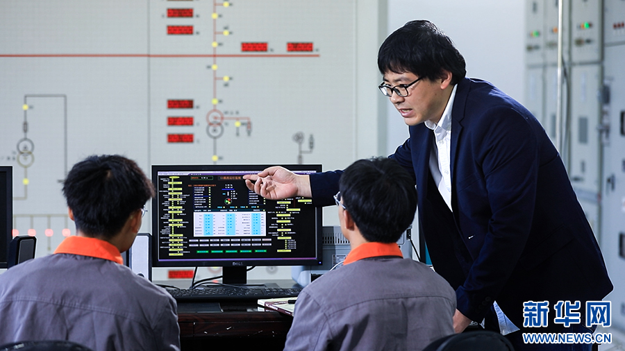 模擬電站實訓室內,老師給學生講解電站相關知識(2022年11月24日攝)。新華網發(徐華陵 攝)