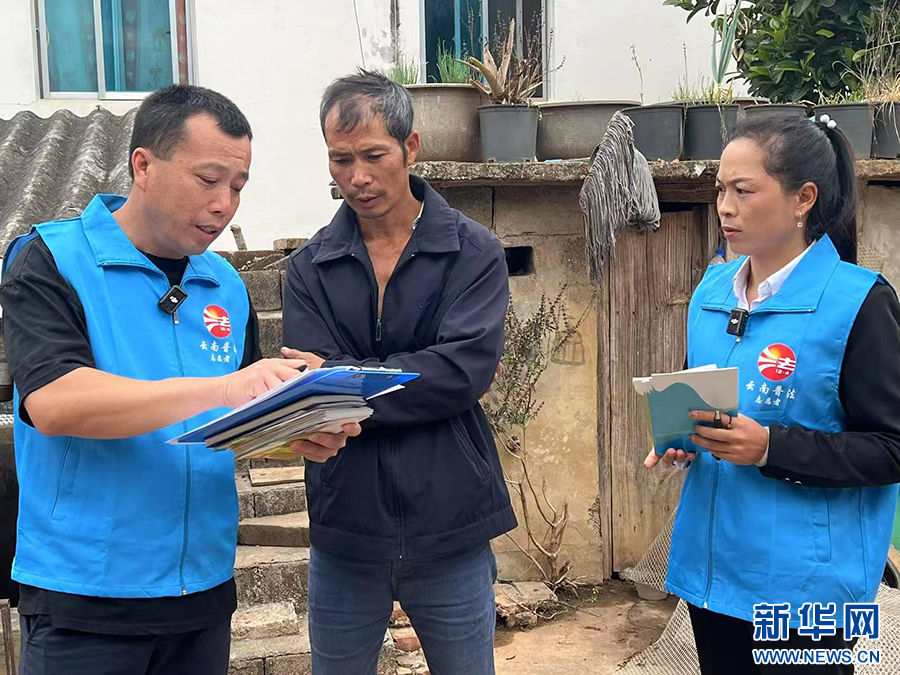 普洱市思茅區龍潭鄉龍潭村民委員會龍潭村民小組工作人員開展普法工作(3月18日攝)。新華網發(楊楨宇 攝)