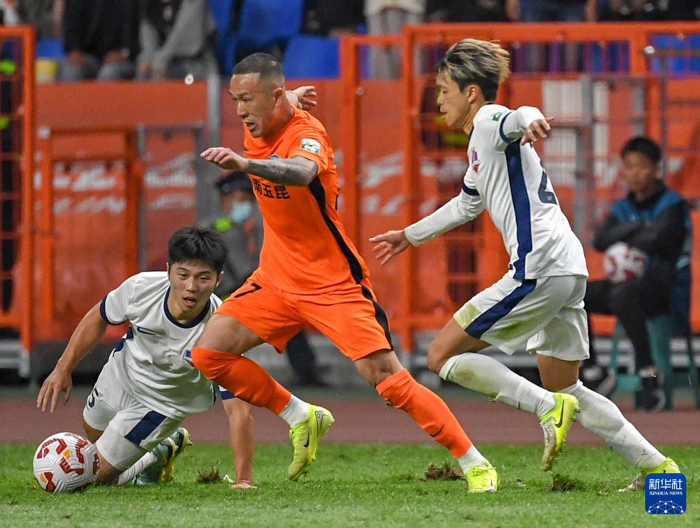 5月16日,云南玉昆隊球員韓子龍(中)在比賽中帶球突破。新華社發(彭奕凱 攝)