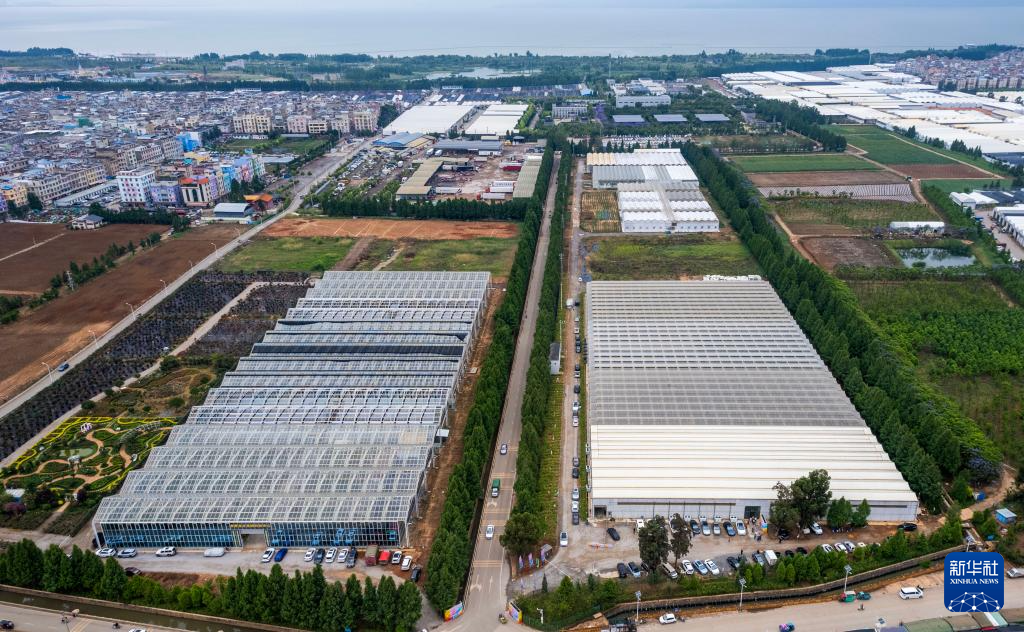 這是5月18日拍攝的昆明斗南國際花卉技術創新中心(無人機照片)。新華社記者 陳欣波 攝
