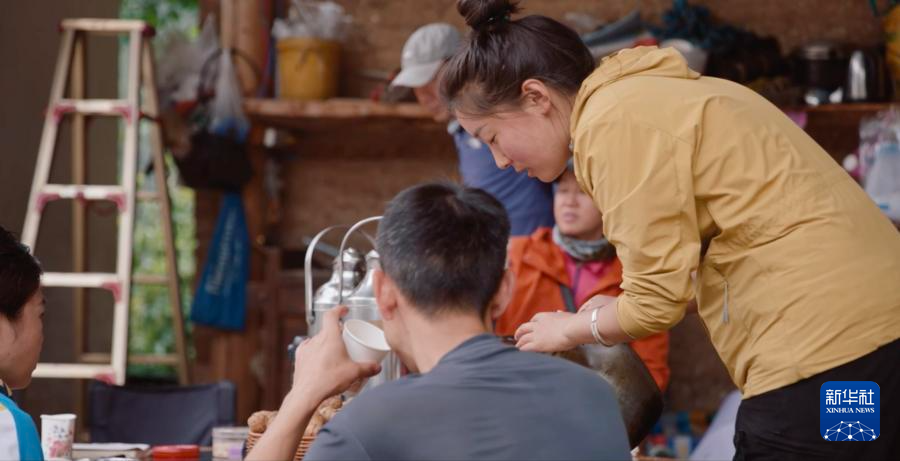邊瑪永宗正在接待前來徒步的游客。新華社發