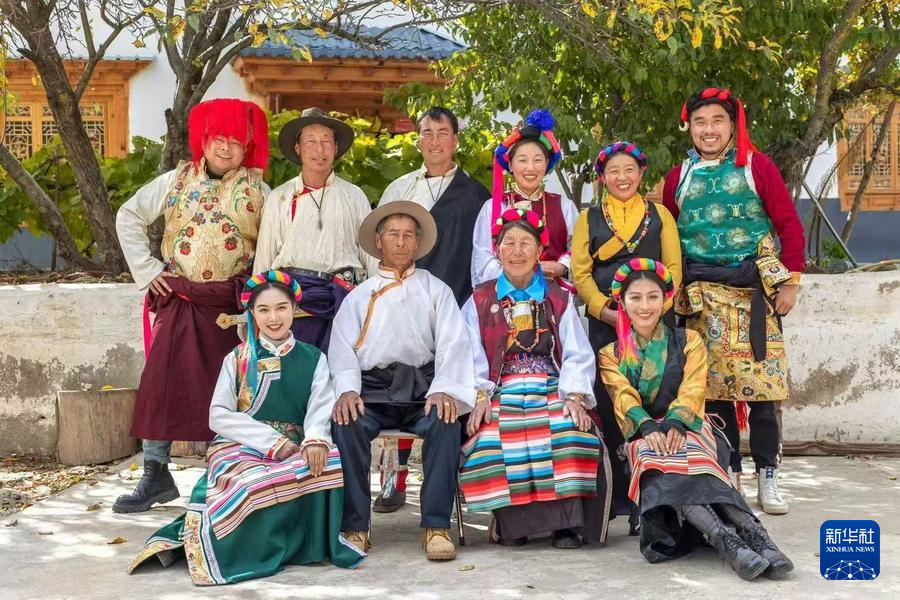 邊瑪永宗(后排左四)和村民們的合影。新華社發