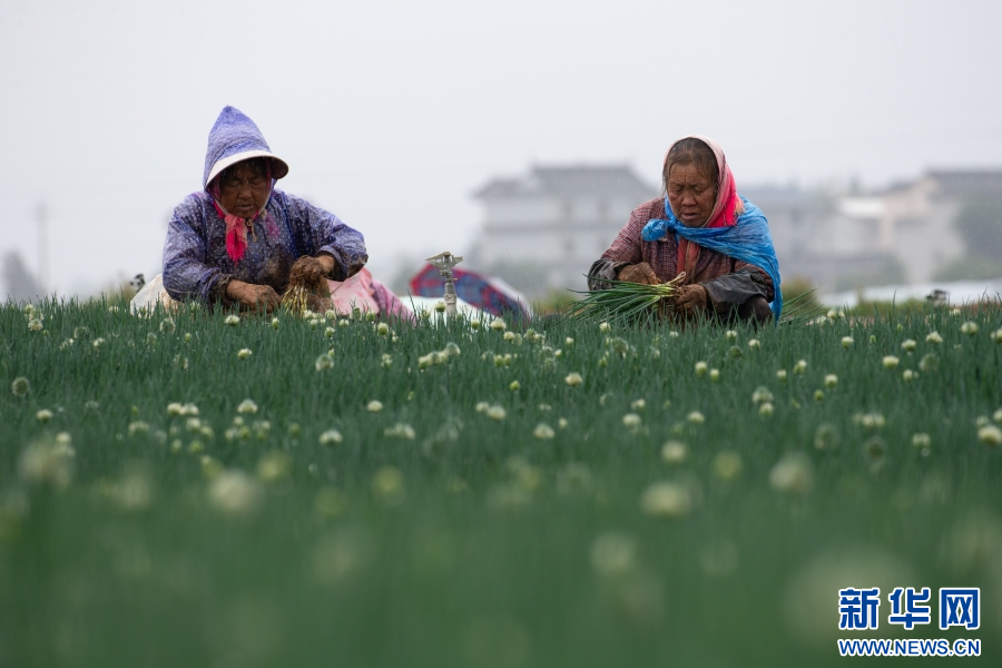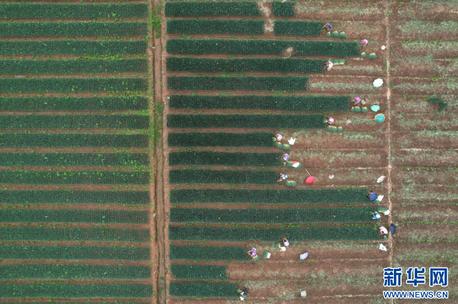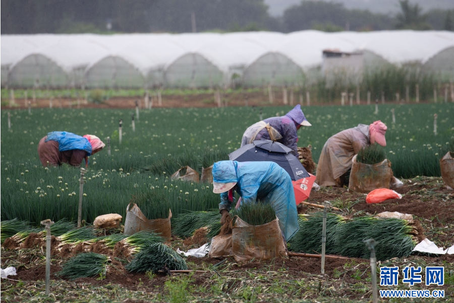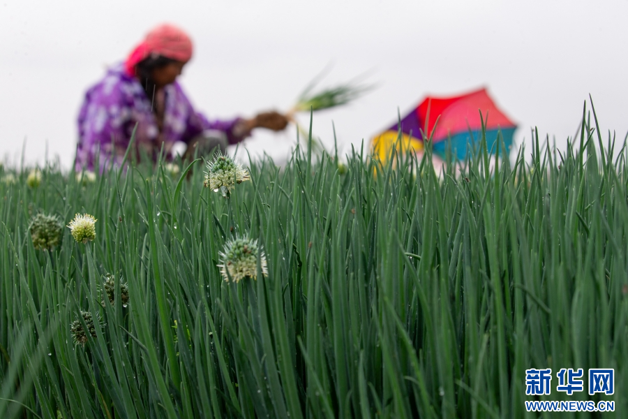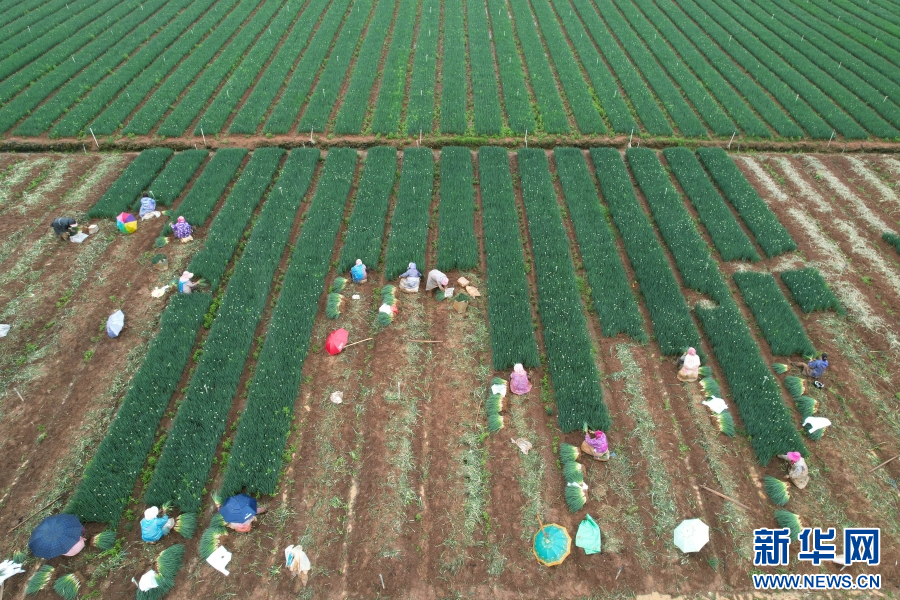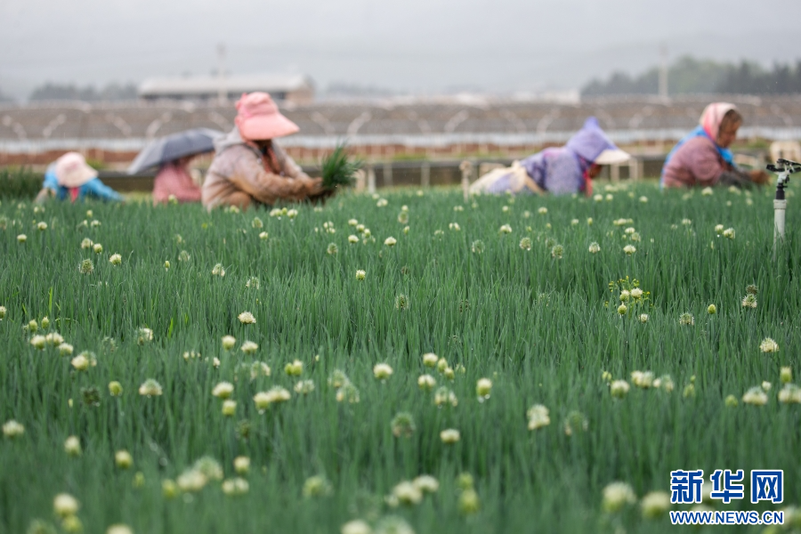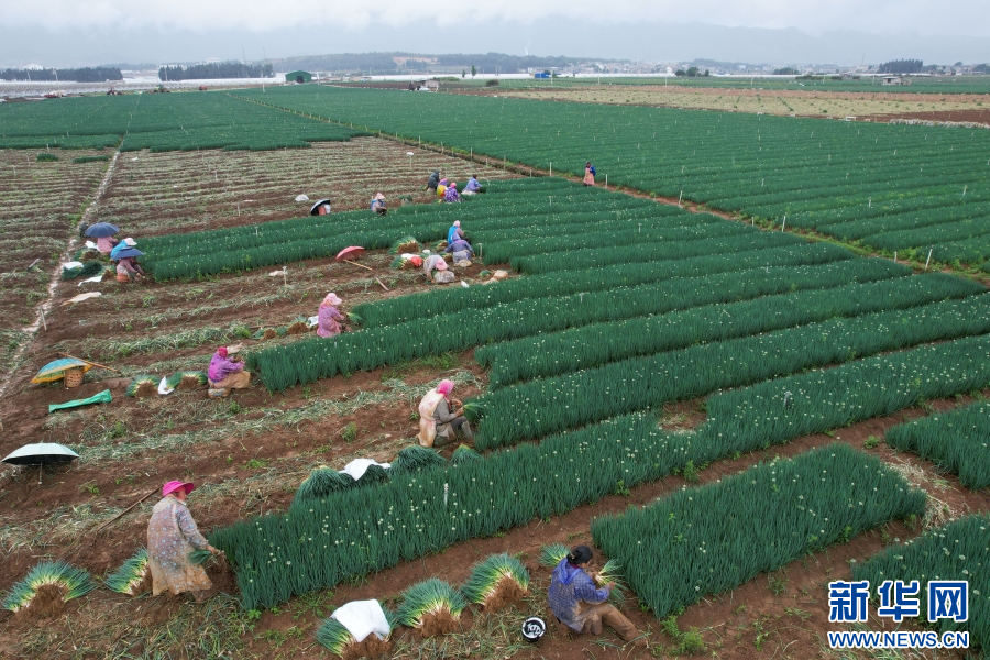 云南省曲靖市麒麟區越州鎮,村民正在采收香蔥(5月25日攝)。新華網發(楊俊鵬 攝)