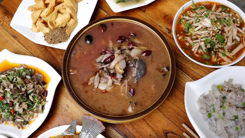 人們精選雞刺根、小紅蒜、茴香根等數十味藥根食材,配以土雞、排骨文火慢燉成湯。