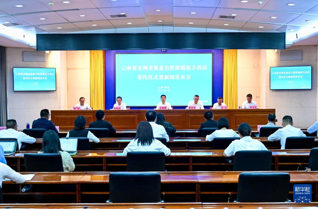 云南省首例多要素自然資源組合供應簽約儀式暨新聞發布會現場。新華社發(云南省自然資源廳供圖)