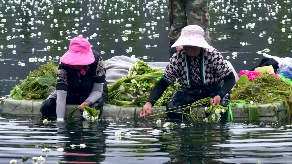 海菜花原產洱海,對水質要求極高,水清則花盛,水污則花敗,是水質的“試金石”和“風向標”,也是當地“生態菜”“致富菜”。