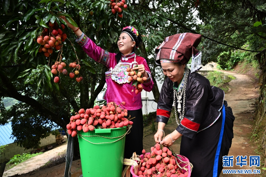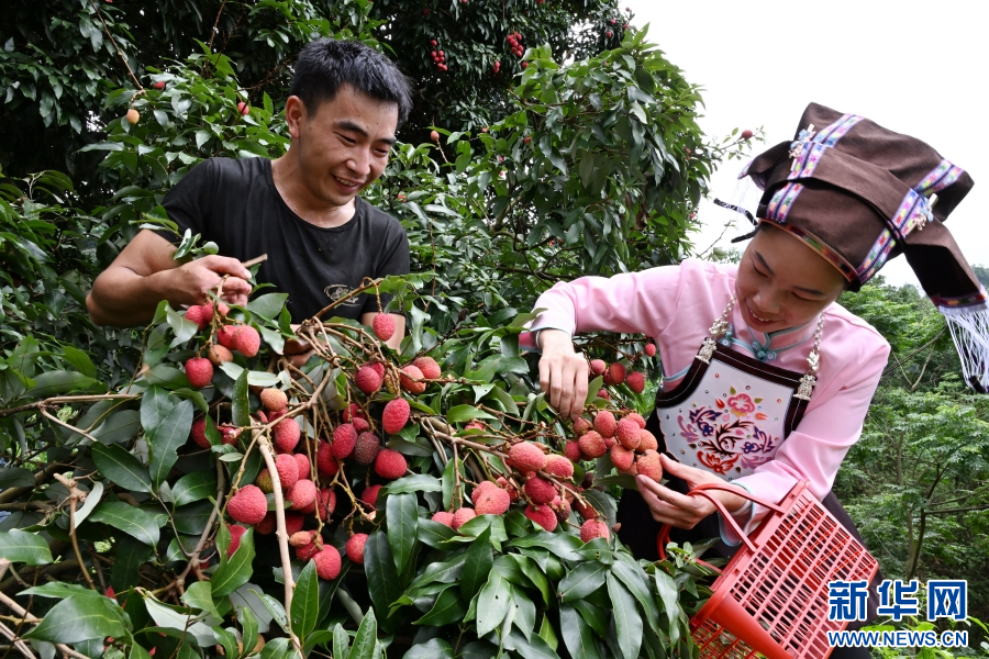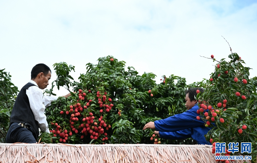 村民采摘荔枝(6月9日攝)。新華網發(熊平祥攝)