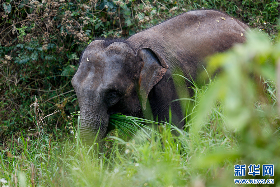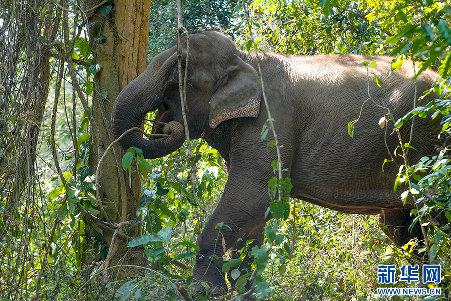 亞洲象在雨林里采食植物(3月9日攝)。新華網發(徐華陵 攝)
