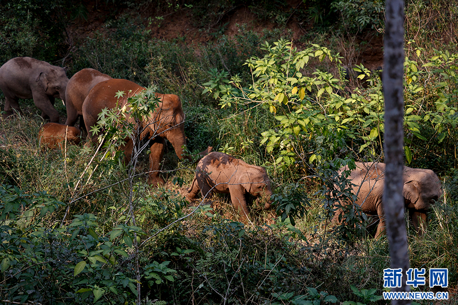 亞洲象群在野外采食(3月4日攝)。新華網發(徐華陵 攝)