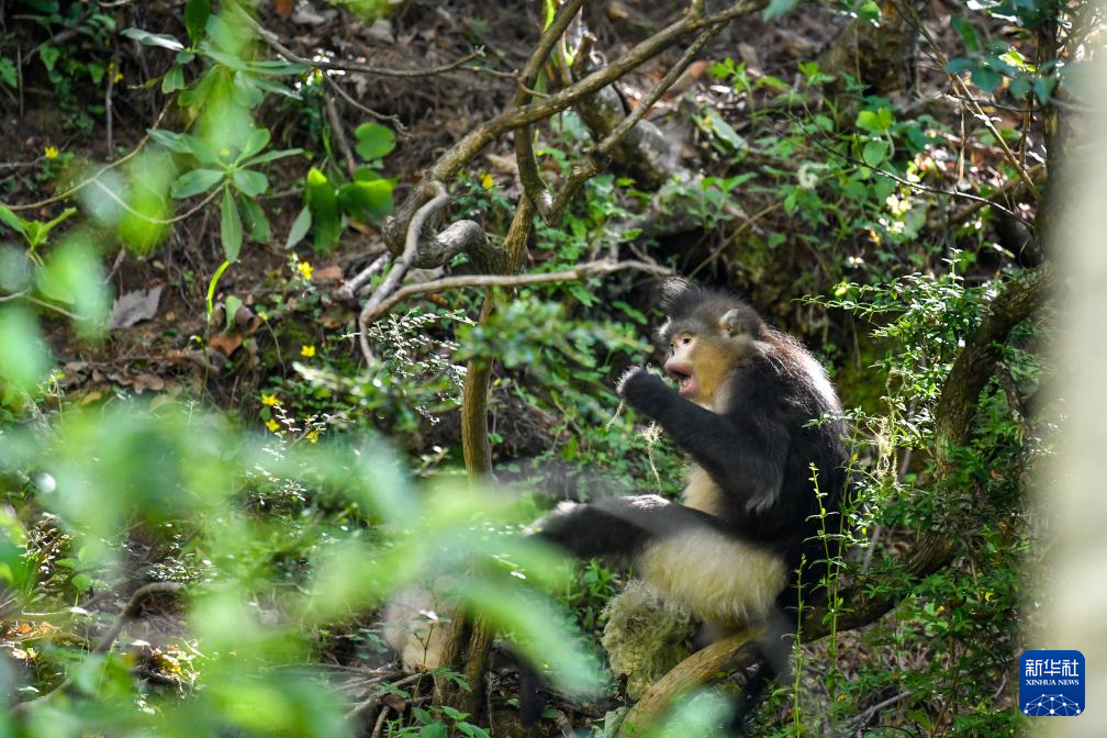 這是6月15日在白馬雪山國家級自然保護區拍攝的滇金絲猴。新華社發(彭奕凱 攝)