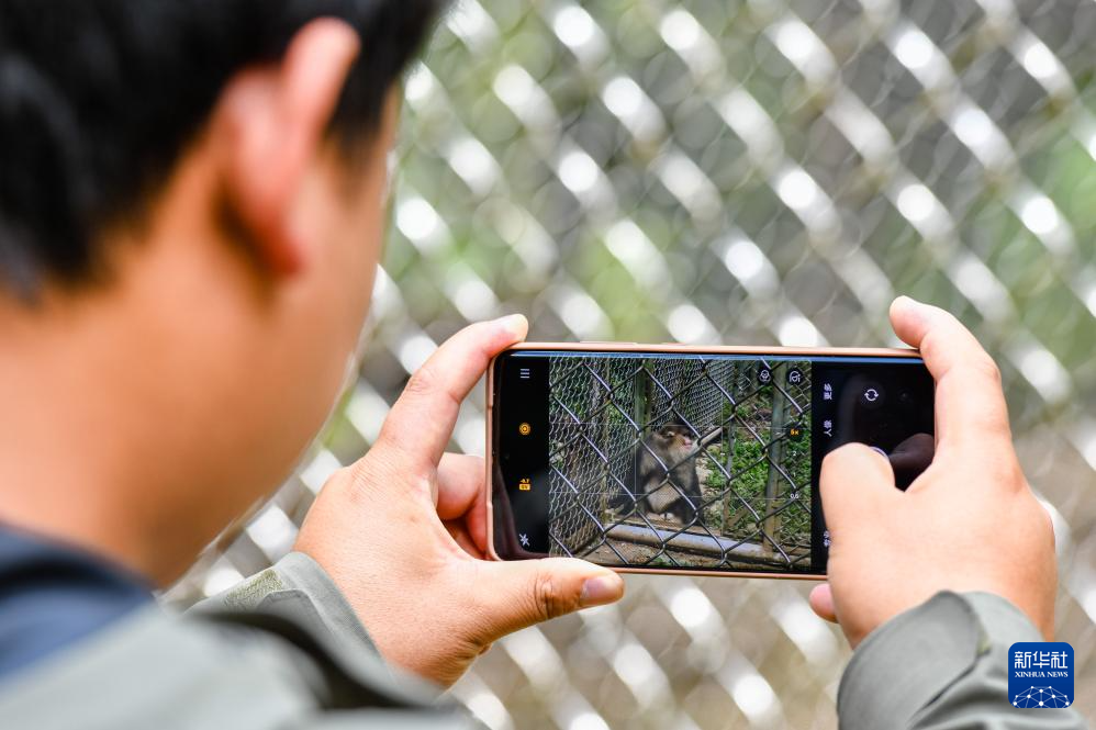 6月15日,保護區工作人員在救助站拍攝記錄被救助的滇金絲猴狀況。新華社發(彭奕凱 攝)