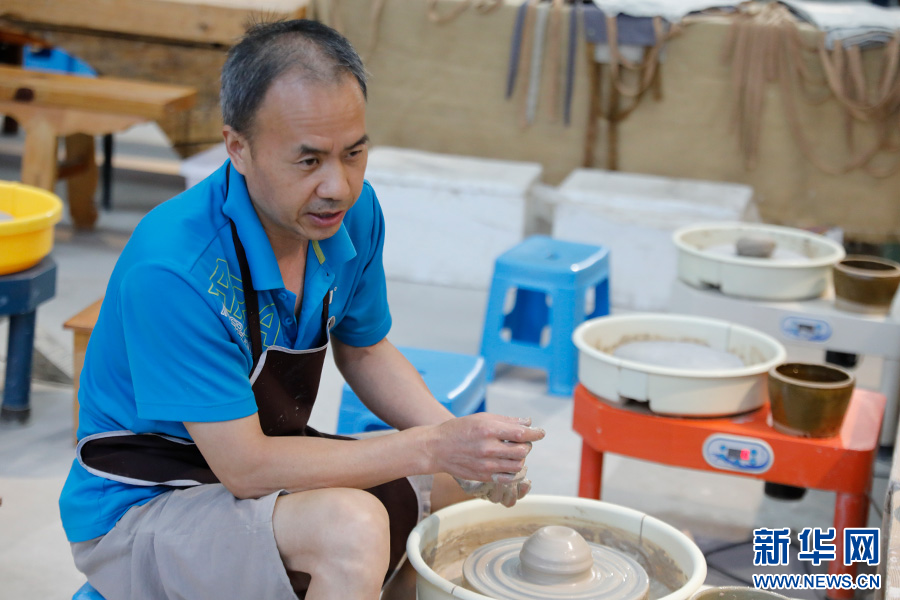 釋也陶藝傳習館內,老師在講解陶藝制作(6月9日攝)。新華網發