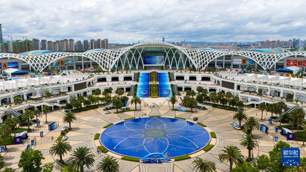 6月18日拍攝的第9屆中國—南亞博覽會舉辦地昆明滇池國際會展中心。(無人機照片 彭奕凱攝)