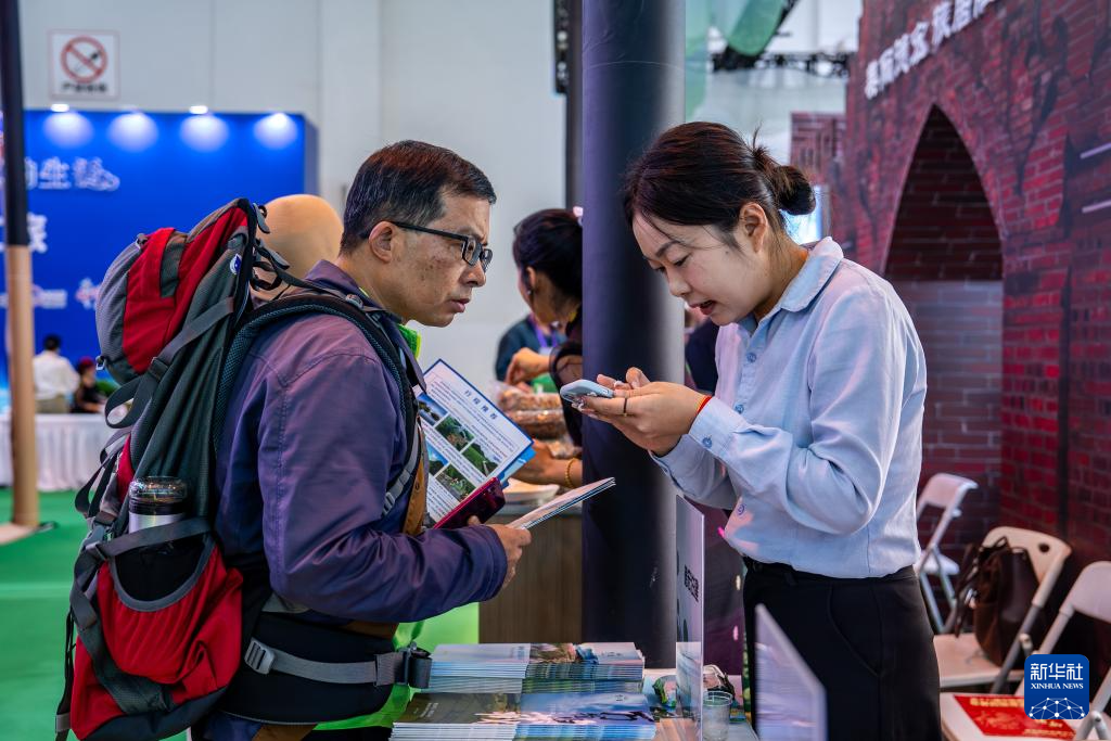 6月20日,觀眾在第9屆中國—南亞博覽會旅居云南館咨詢文旅信息。新華社記者 胡超 攝
