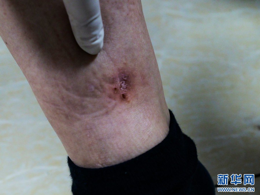 在李向麗的小腿上 還有被飛蟻反復咬傷的明顯傷痕