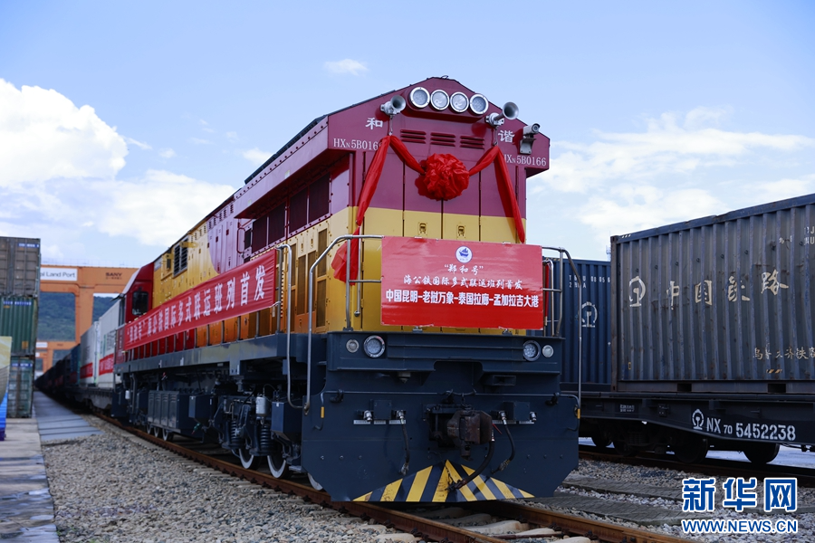 7月4日下午,滿載蔬菜、化肥、飼料等貨物的首趟“鄭和號”海公鐵國際多式聯運班列,從昆明市晉寧區騰俊國際陸港多式聯運公鐵物流中心緩緩駛出。這趟班列將沿中老鐵路抵達老撾萬象,再通過公路接駁至泰國拉廊港,經海運最終運抵孟加拉國吉大港,全程用時約18天。