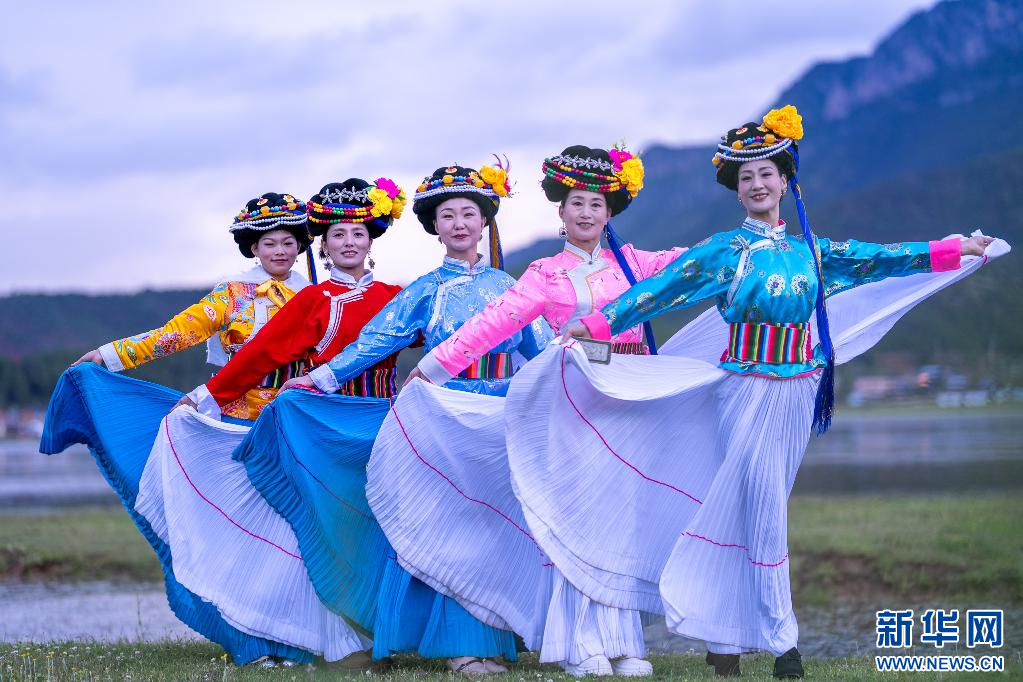7月3日,寧蒗縣各族群眾展示民族服飾。