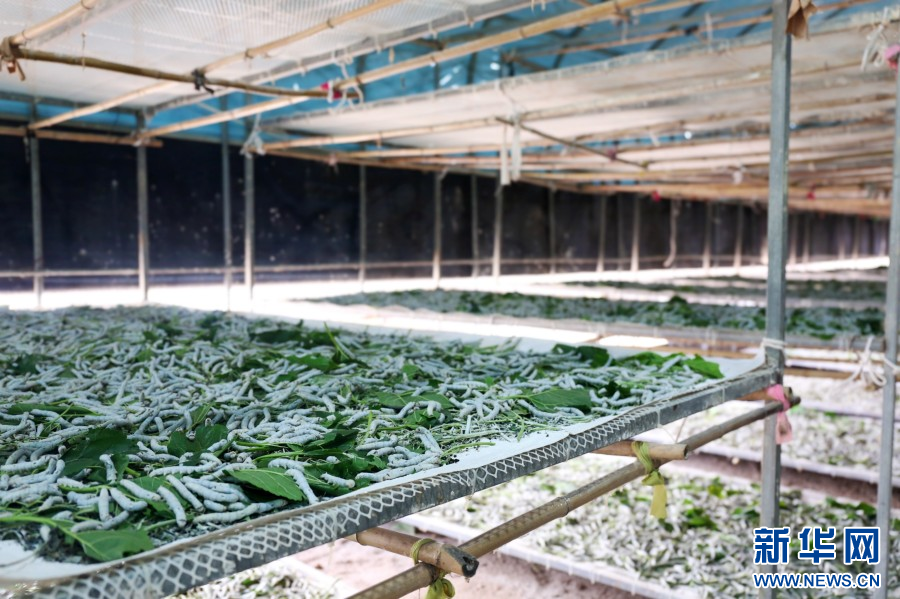 養蠶(6月17日攝)。新華網發(李穎 攝)