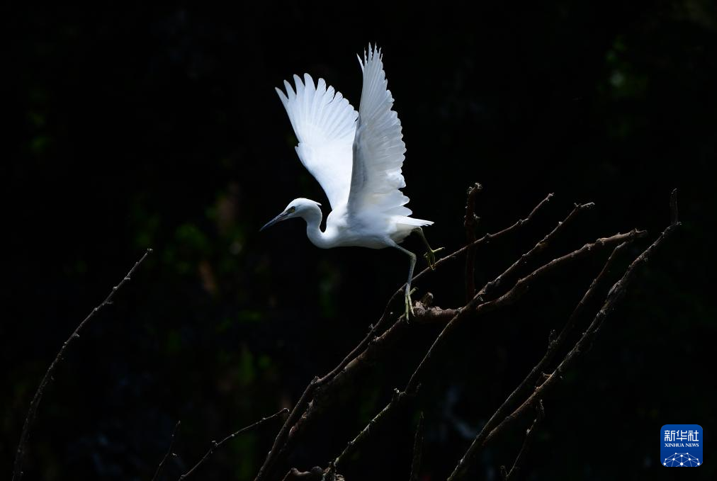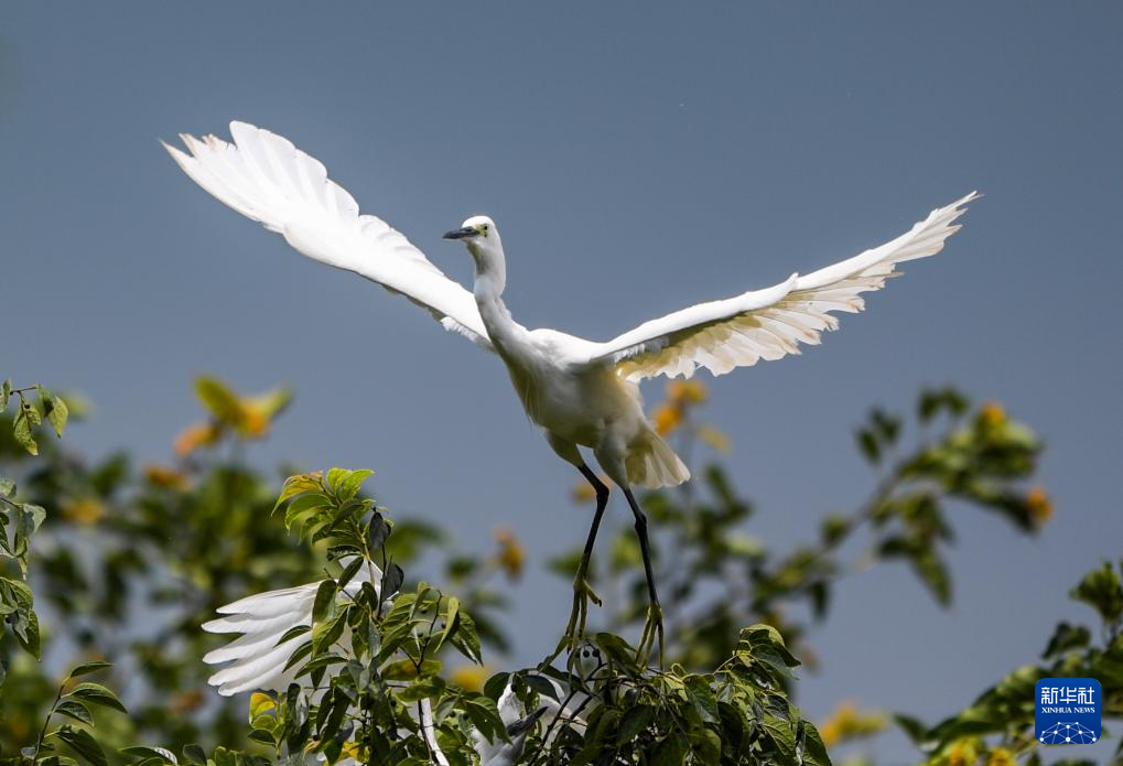 這是7月7日在昆明滇池海洪濕地公園拍攝的白鷺。新華社記者 陳欣波 攝