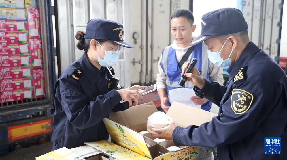從越南南部的椰林里采收的椰子迅速跨越數百公里,抵達中國云南河口口岸,經海關檢驗檢疫合格后,運往加工廠進行落地加工。這些以邊民互市方式進口的越南鮮椰,在中越邊境河口縣的加工廠里經歷開殼、取汁、殺菌等工序,最終變成香甜的椰子凍,銷往國內市場。