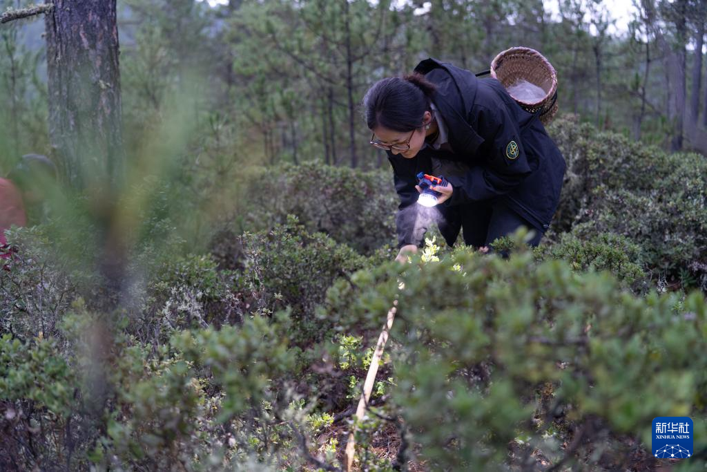 7月25日清晨,香格里拉市吉迪村村民拉姆央宗在采松茸。新華社記者 高詠薇 攝