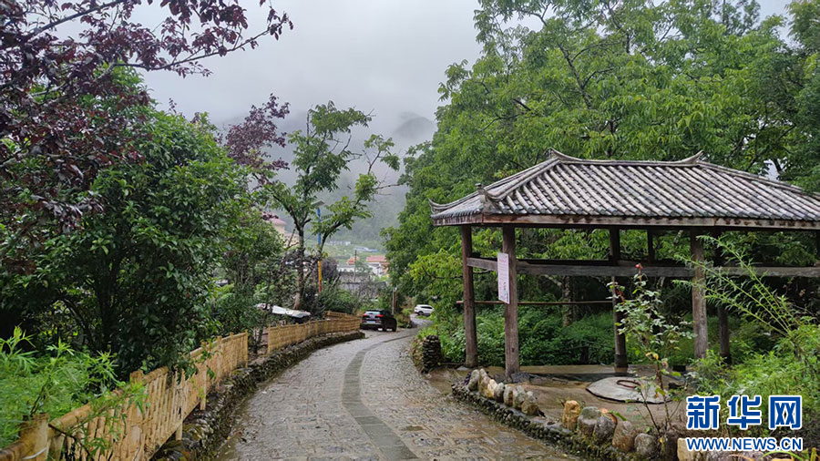 雨后的國門新村,道路更顯整潔,兩旁的溝渠里清泉汩汩流淌,保留傳統風貌的民居與籬笆院落、古樹相得益彰,與曾經村民口中的“黑泥塘”已迥然不同。