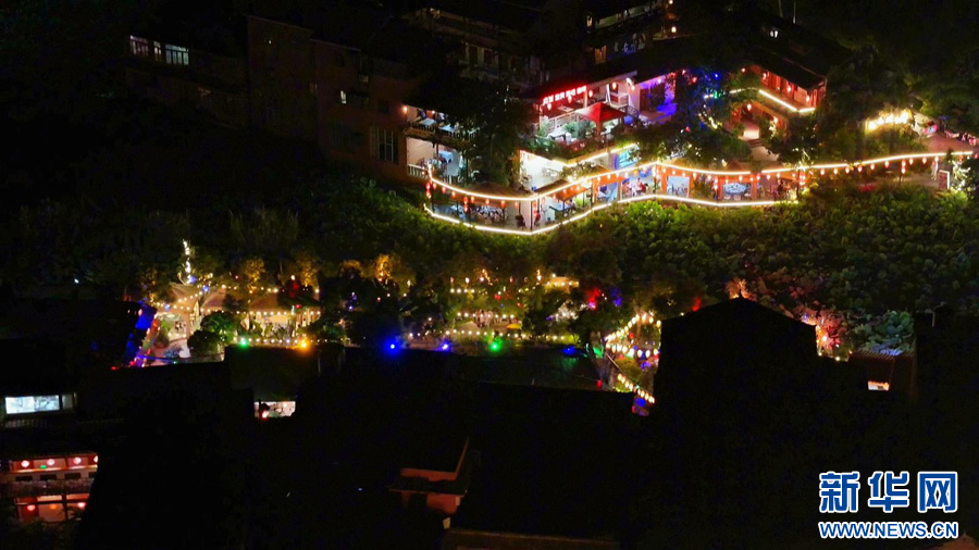普者黑旅游景區仙人洞村夜間經濟航拍(8月3日攝)。新華網發(朱智 攝)