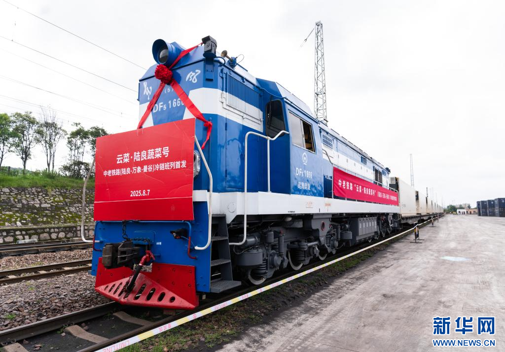新華網昆明8月8日電 8月7日11時許,一列裝載10柜約260噸云南蔬菜的“云菜·陸良蔬菜號”冷鏈貨運班列從云南省曲靖市陸良縣陸良火車站發車。該班列沿中老鐵路到達老撾萬象南站后,所運蔬菜將繼續轉運至泰國曼谷。