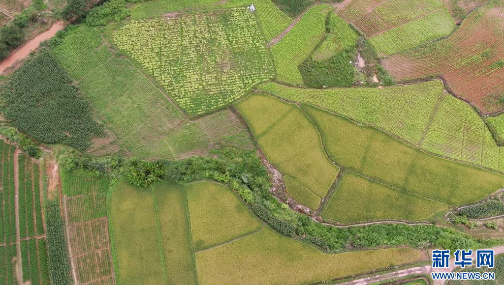航拍稻田(8月13日攝)。新華網發(景谷縣融媒體中心供圖)