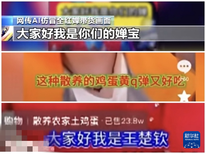 “我是你們的嬋寶,有事請大家幫忙,今天讓媽媽先拿出300單老家的土雞蛋,給大家放福利”“大家好,我是莎莎,我為嬋寶家農家土雞蛋代言”“大家好,我是王楚欽,昨天收到嬋妹私信,說她家土雞蛋大豐收,這么好的土雞蛋不發出去就可惜了”……聽到熟悉的“聲音”,粉絲誤以為是奧運冠軍本人,紛紛下單購買。殊不知,這些都是通過AI偽造,克隆出的名人聲音。