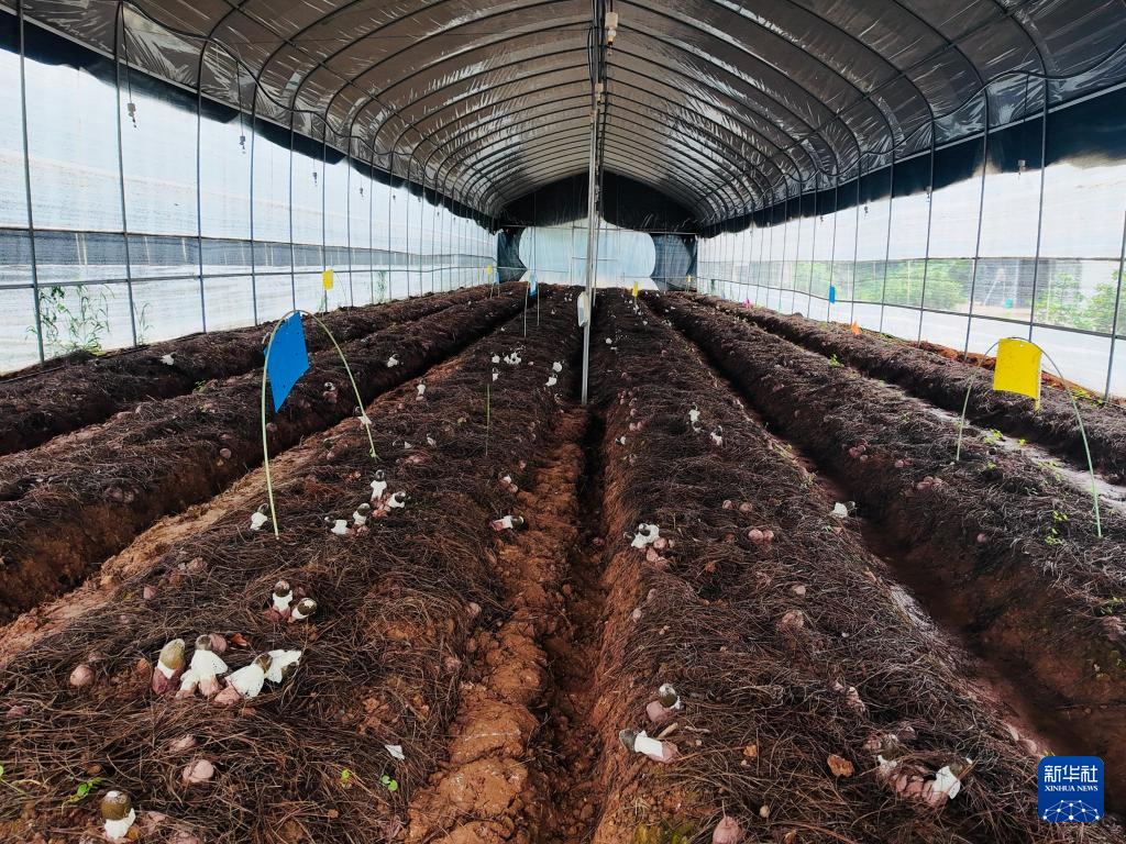 這是8月20日拍攝的南華縣食用菌種植試驗示范基地內紅托竹蓀覆土栽培大棚。新華社記者熊軒昂 攝