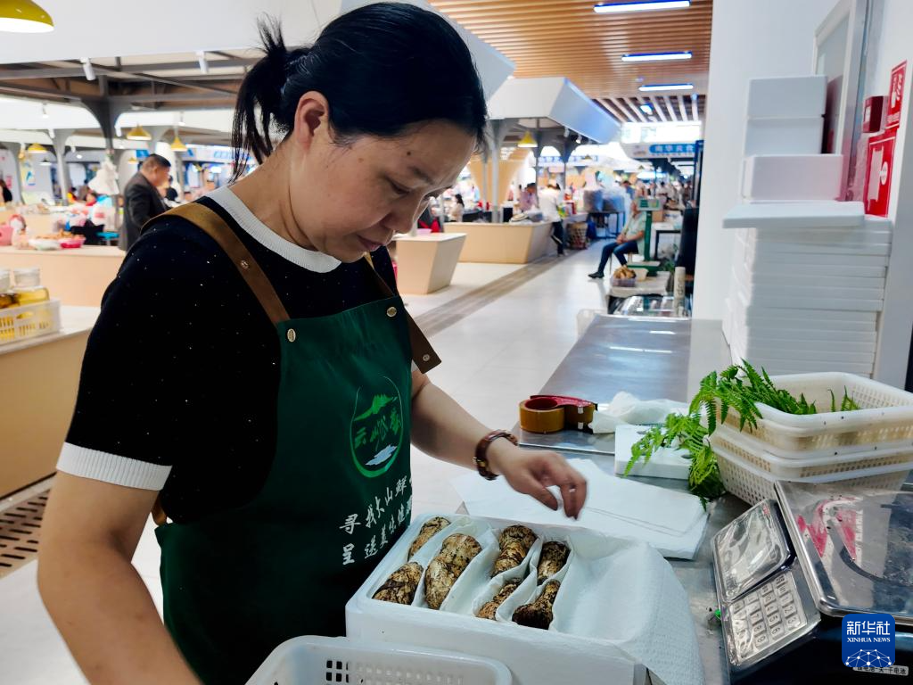 下午兩點,云南·南華國際野生菌交易中心內一派熱鬧景象。商戶李曉燕正將剛分揀好的松茸打包發貨?!斑M入產季以來,線上線下的訂單都供不應求,僅野生食用菌銷售額就超過100萬元?!崩顣匝嗾f,新鮮采摘的野生菌通過冷鏈物流,1到2天內即可出現在北京、廣東等地的餐桌上。