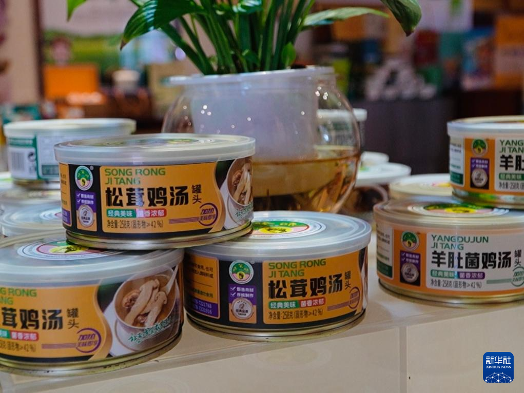 南華縣咪依嚕天然食品開發有限公司推出的食用菌加工產品。新華社記者熊軒昂 攝