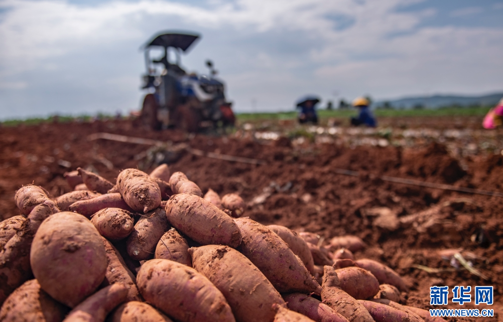在云南省硯山縣石碑寨村,村民忙著采收、分揀紅薯(8月17日攝)。新華網發(熊平祥 攝)