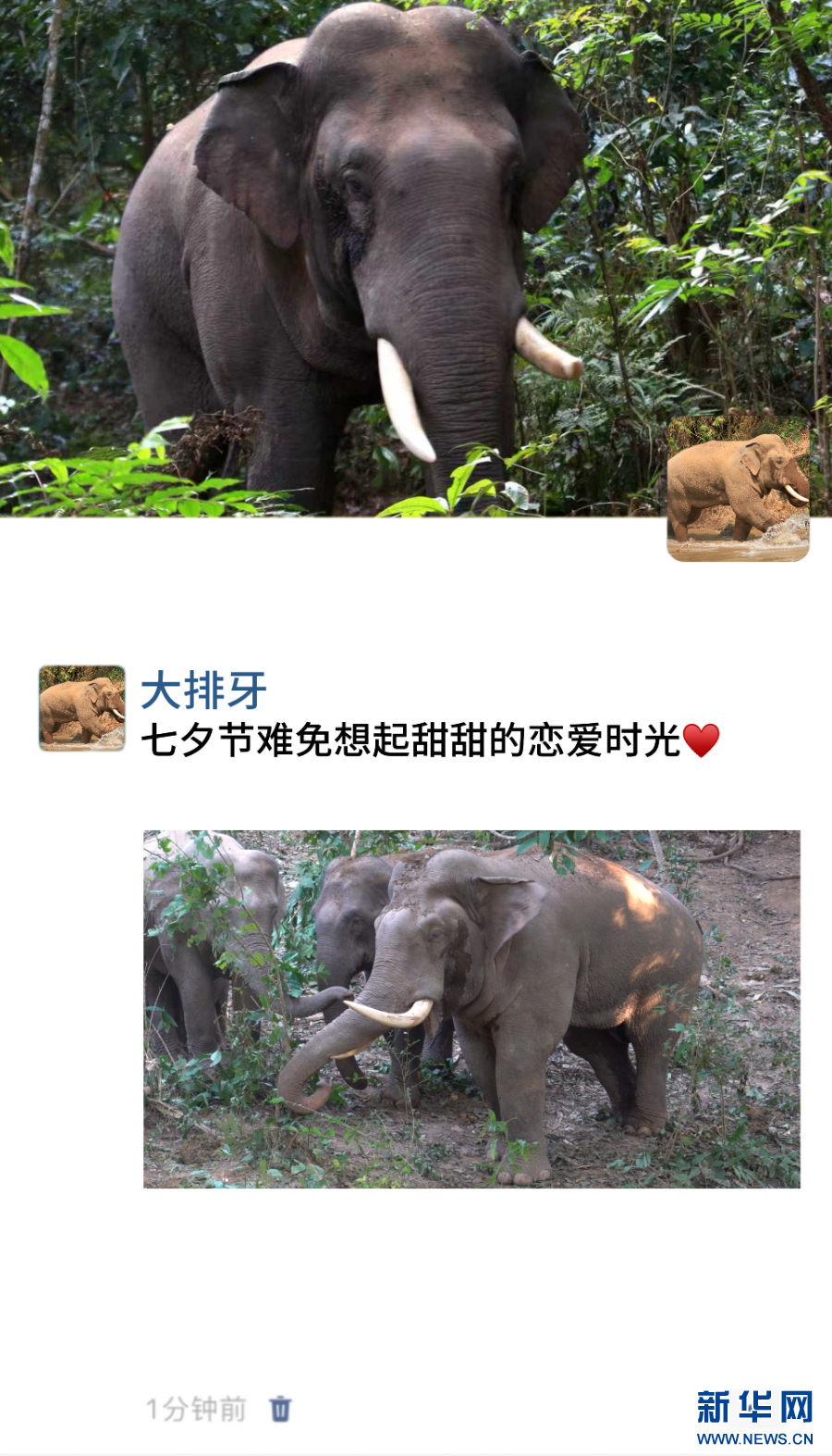 “大排牙”與象群在一起活動并親密交流(資料圖)。新華網發(西雙版納野象谷 供圖)