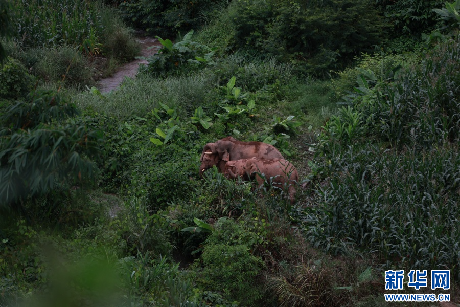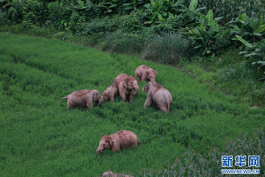 正在覓食的野生亞洲象群(7月7日攝)。新華網發(徐華陵 攝)